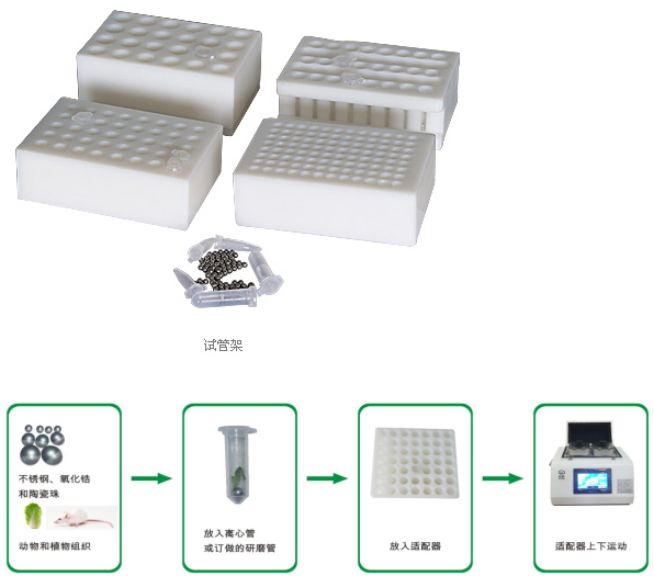 工作原理:機械振動,通過珠/球等在樣品管內震蕩實現樣本的破碎;